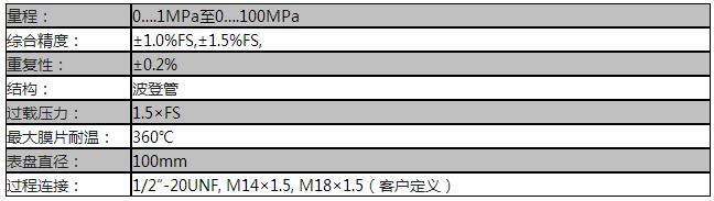 额定量程:0….1MPa至0….100MPa